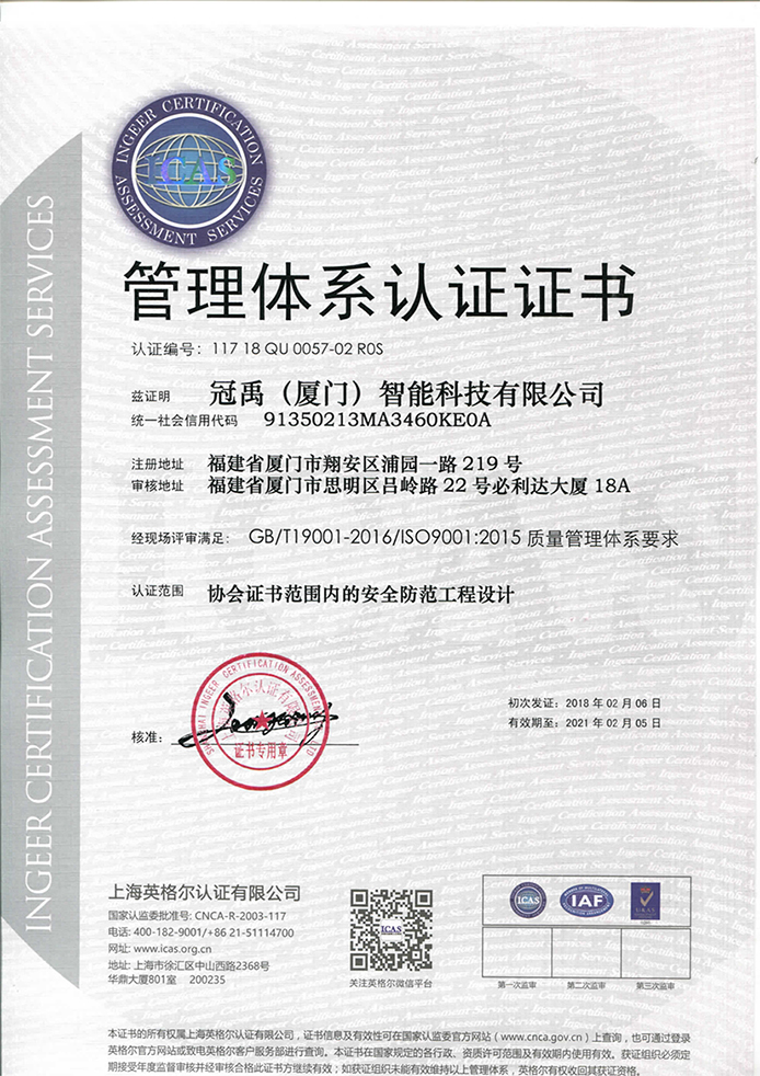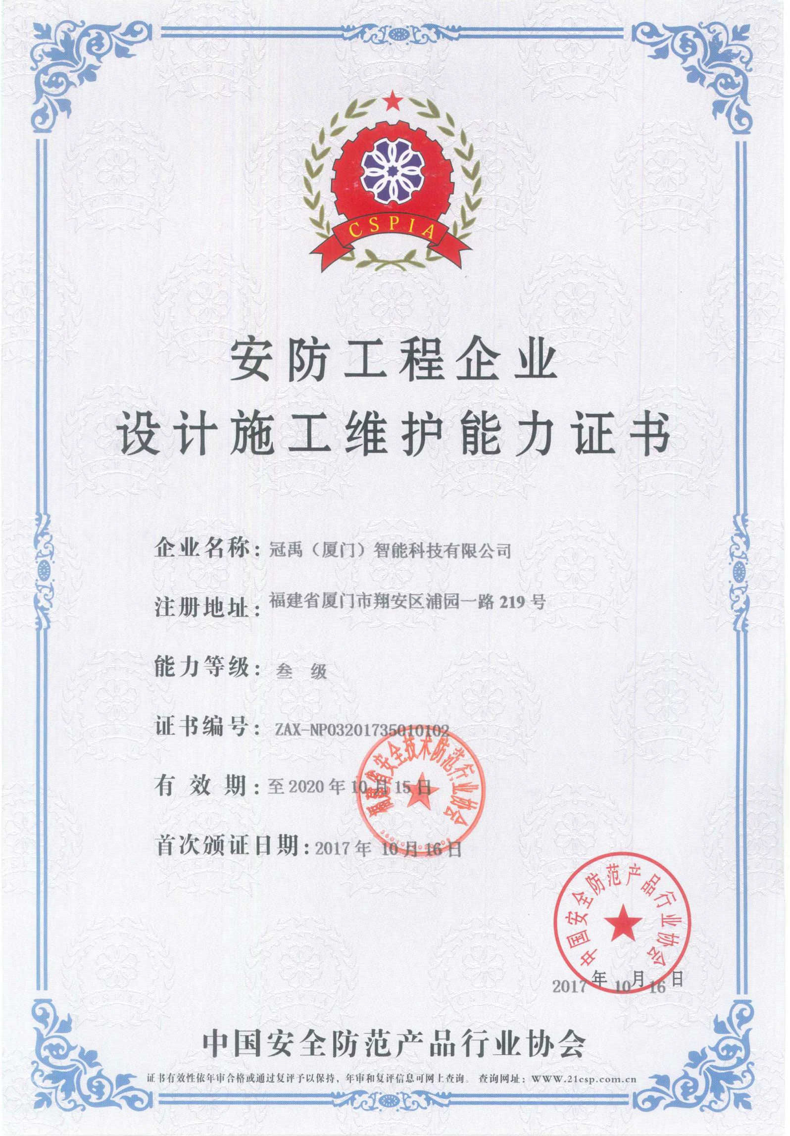 安防工程企業(yè)設(shè)計(jì)施工維護(hù)能力證書(shū)