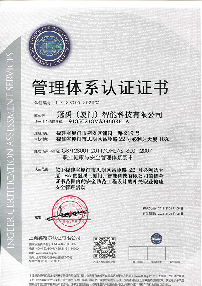 職業(yè)健康安全管理體系認(rèn)證證書(shū)2