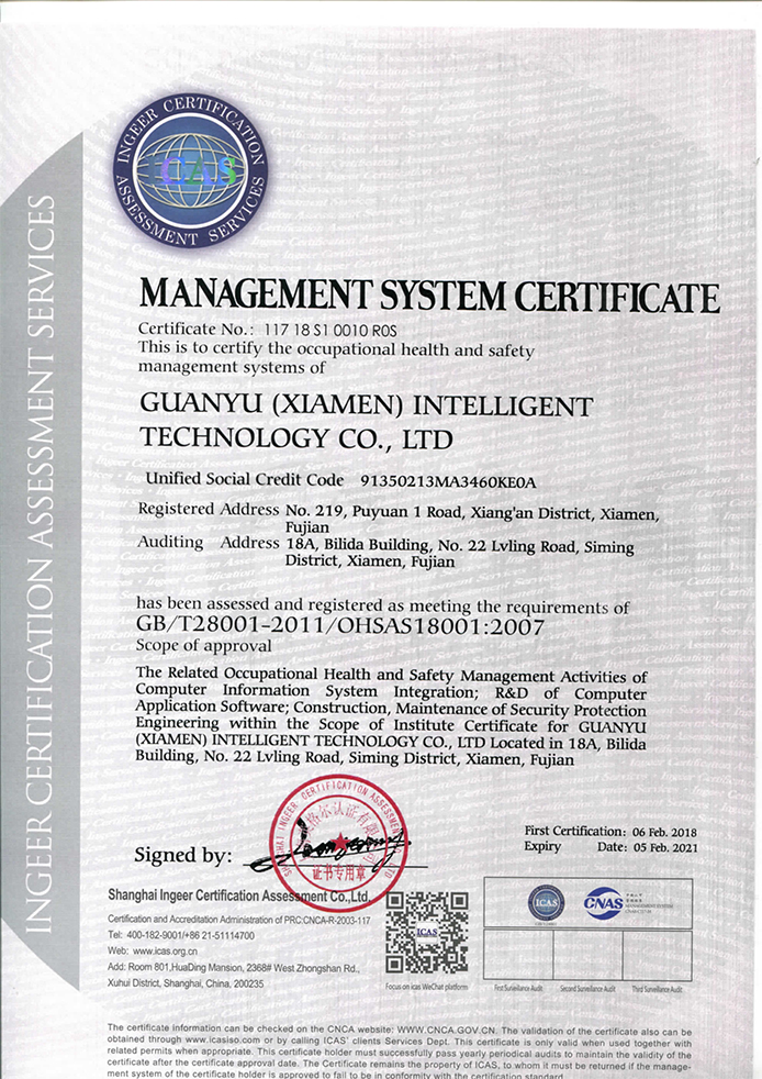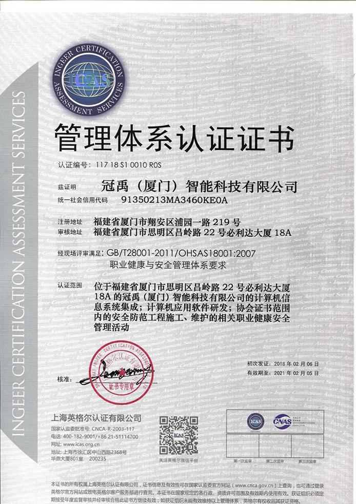 職業(yè)健康安全管理體系認(rèn)證證書(shū)1