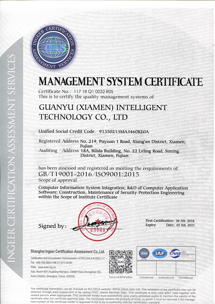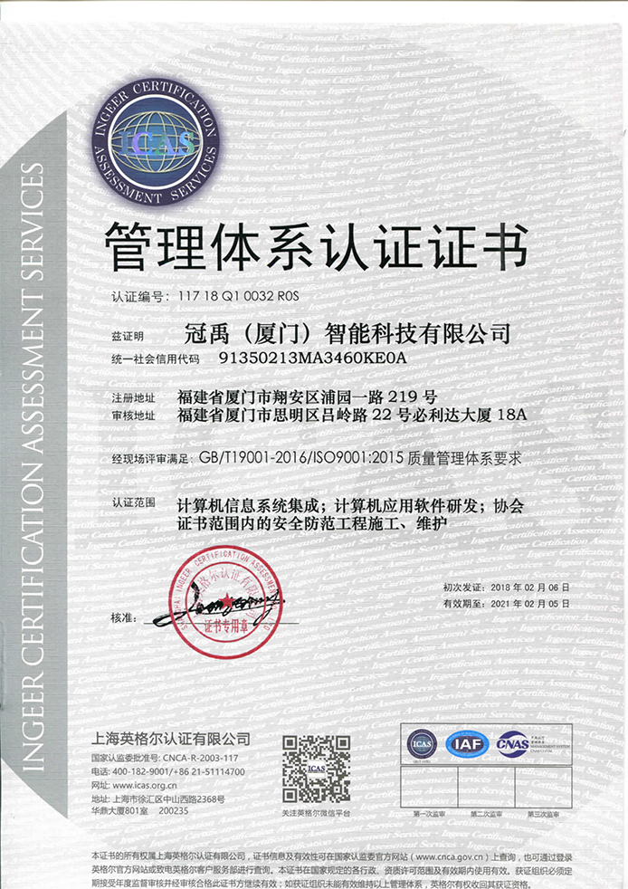 質(zhì)量管理體系認(rèn)證證書(shū)1